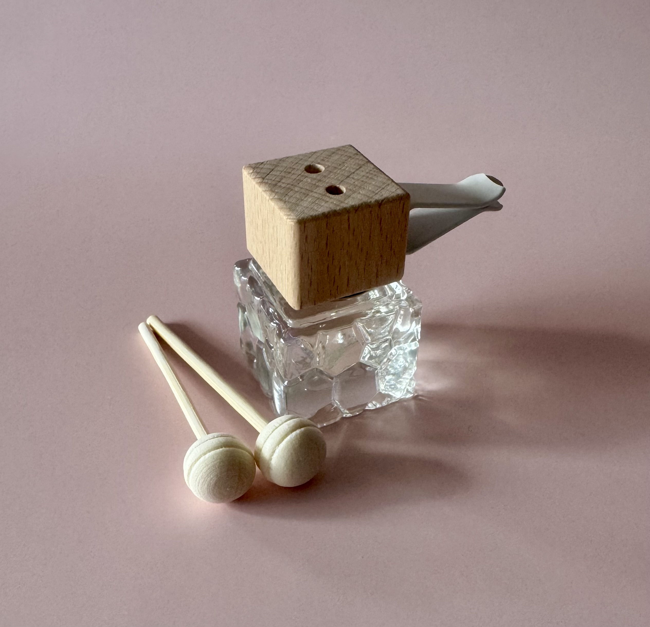 – enfoncez les 2 bâtons dans le flacon afin que le bois s’imbibe de la fragrance